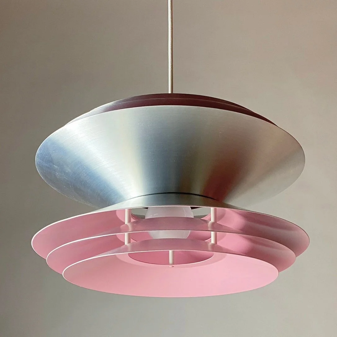 Six shades of brushed aluminum and pink glossy lacquer is what this stunning ceiling light consists of.